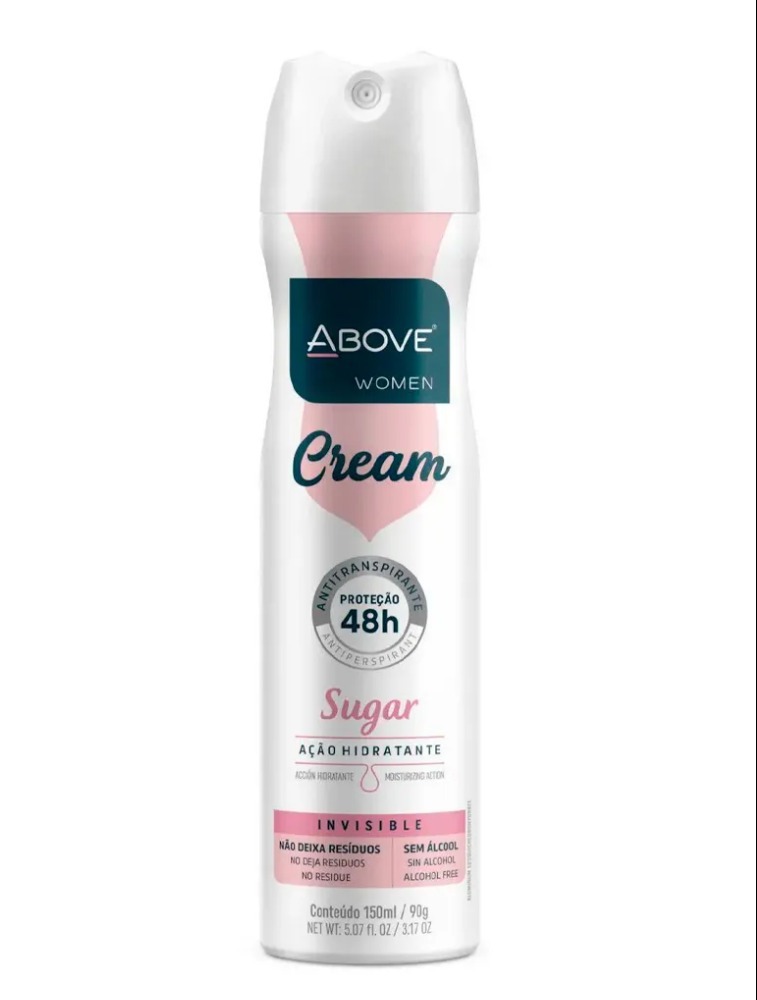 O Desodorante Aerosol Above Cream Sugar Women 150ml foi especialmente desenvolvido para fornecer proteção eficaz contra o odor e a transpiração durante todo o dia. Sua fórmula avançada combina ingredientes cuidadosamente selecionados para garantir frescor e confiança duradoura. Possui fórmula enriquecida com ativos que proporcionam não apenas uma proteção contra o mal odor causado pelo suor, mas também uma hidratação para pele das axilas e maior conforto durante o uso.