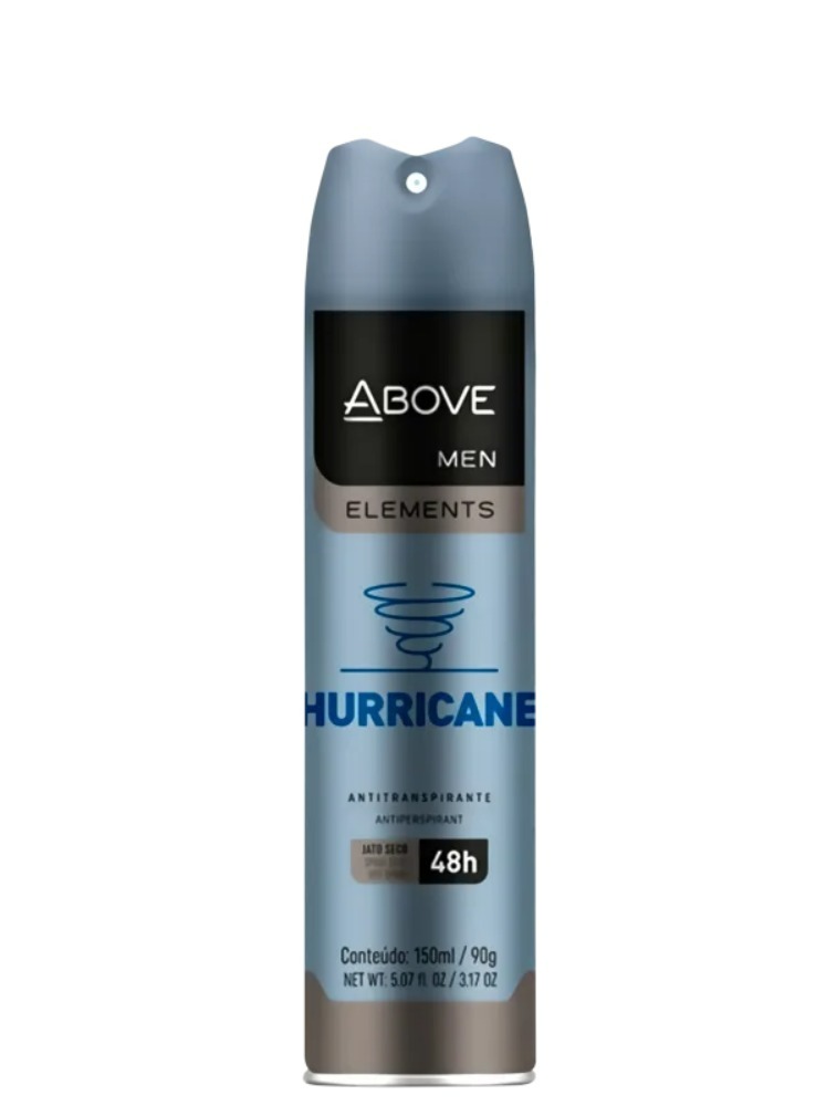 Desodorante antitranspirante. Above Men Elements Hurricane realiza um proteção intensa na pele por até 48 horas. Além disso, proporciona máxima hidratação para as axilas, conferindo maciez e perfumando.