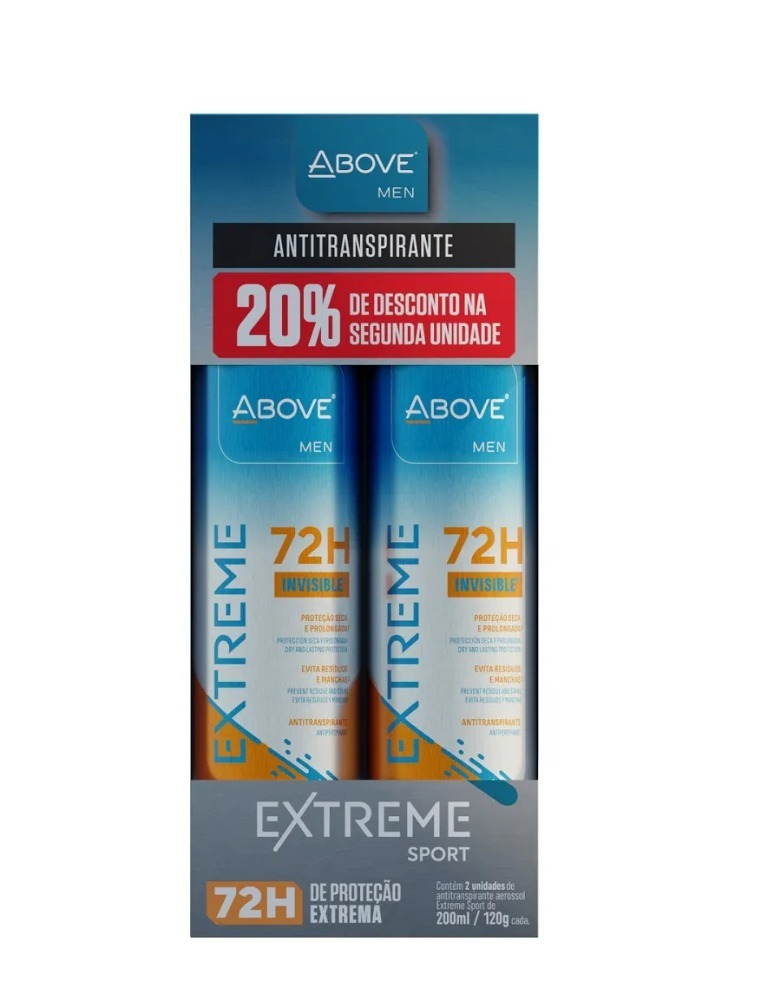 O Desodorante Antitranspirante Above Aerossol Men Extreme Sport 72h é a solução perfeita para homens que buscam desempenho superior em todas as atividades. Com ação prolongada de 72 horas, este desodorante oferece proteção eficaz contra odores e transpiração, mantendo você fresco e confiante durante todo o dia. Ideal para quem tem um estilo de vida ativo e precisa de um aliado confiável.