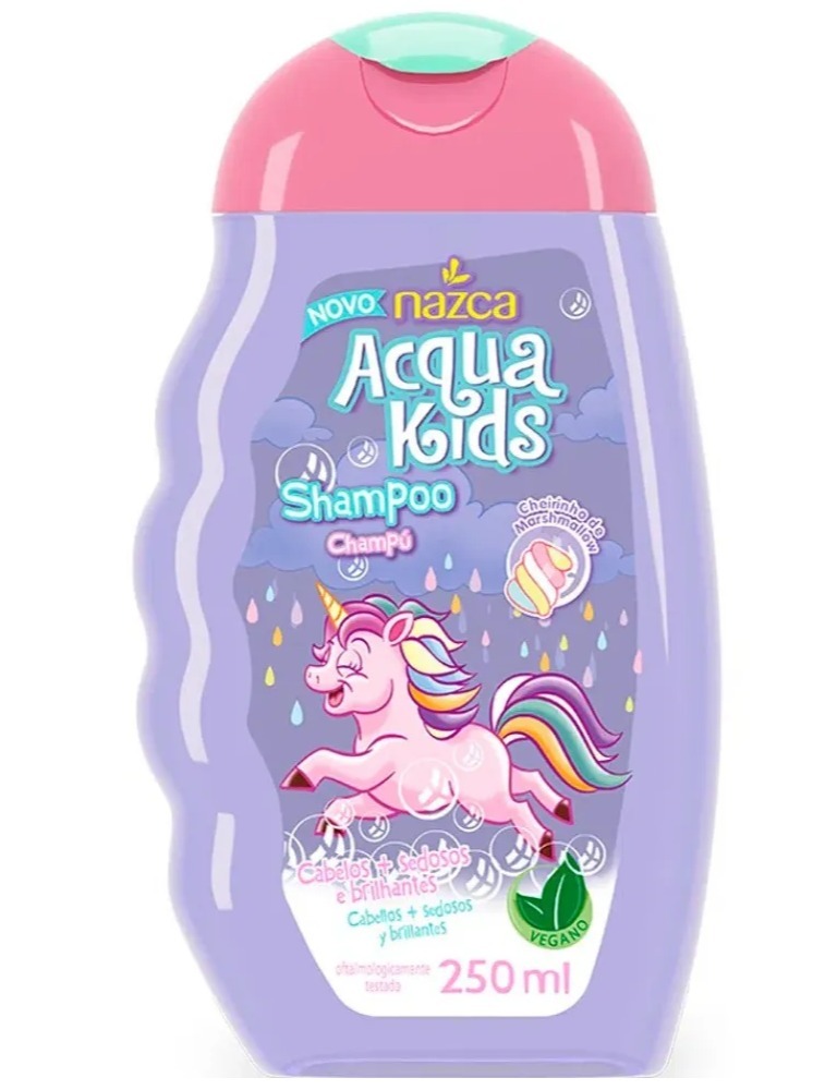 Shampoo Infantil Acqua Kids Marshmallow. Deixa os cabelos mais sedoso e brilhantes. Fórmula vegana, suave, balanceada e foi testada oftalmo e dermatologicamente.