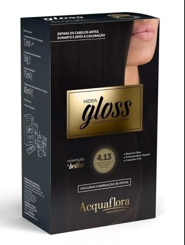 Saiba mais sobre o Kit Coloração Acquaflora Hidra Gloss: Perfeito para aquelas pessoas que desejam clarear fios naturais em até dois tons em casa mesmo, escurecer ou para qualquer pessoa que deseja colorir os cabelos com praticidade e tratamento. Seu exclusivo Complexo Protetor-Pré Coloração permite que o processo de coloração aconteça sem comprometer a integridade da fibra capilar. Atua formando um filme protetor nos fios capaz de protegê-los dos danos externos, reparando os cabelos contribuindo para uma melhora considerável da maciez e penteabilidade, diminuindo a porosidade.Kit composto por oxidante, coloração permanente, par de luvas, Complexo Protetor Pré-Coloração e Tratamento Condicionante Pós-coloração.