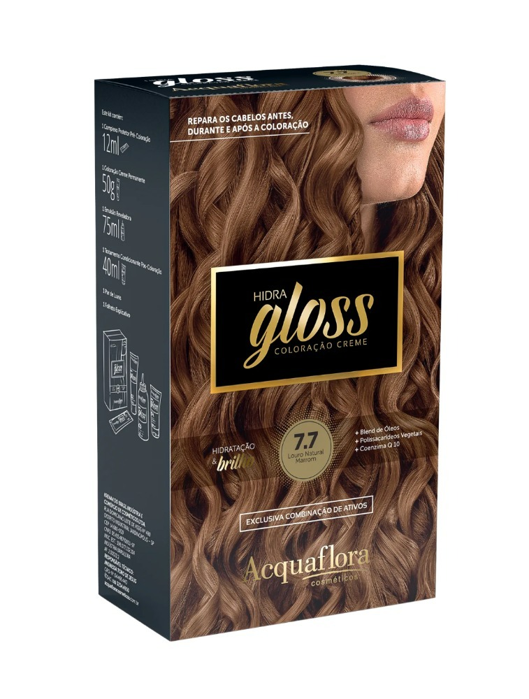 Coloração permanente para todos os tipos de cabelo. Acquaflora Hidra Gloss é ideal para quem deseja mudar a cor dos fios, para tons mais claros ou escuros, sem comprometer a saúde da fibra capilar.