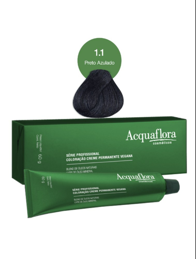 Saiba mais sobre o produto: Coloração Permanente Acquaflora Vegana 1.1 Preto Azulado 60g