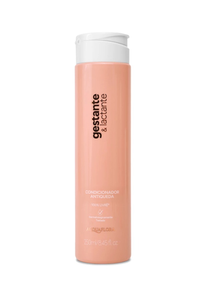 Condicionador que promove desembaraço imediato, desenvolvido especialmente para gestantes e lactantes que buscam um tratamento antiqueda eficaz e seguro para as possíveis perdas dos fios que podem ocorrer no final da gestação e durante a amamentação. Sua fórmula contém ingredientes de origem natural, como Microalgas do Tahiti + Extrato de Alecrim + Aminoácidos que reduzem a queda favorecendo o crescimento de novos fios, fortalece e trata o cabelo conferindo brilho e maciez. Microalgas do Tahiti obtidas por Blue Biotechnology ( processo sustentável e mais eficiente na extração dos ativos ).