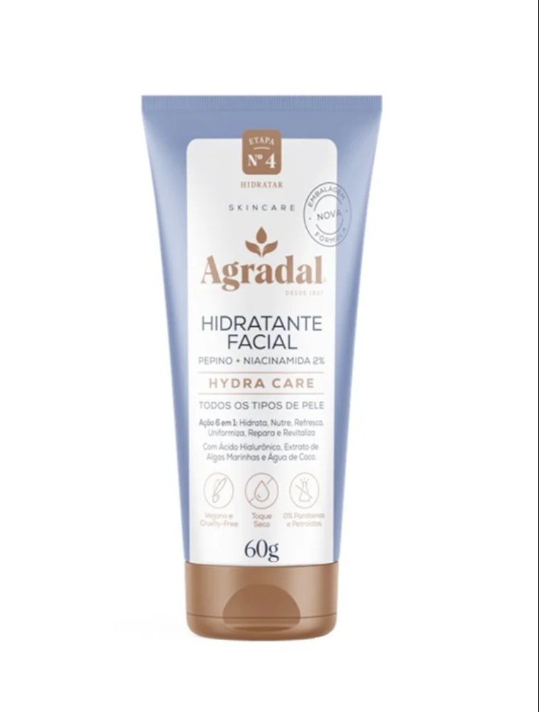 Com hidratação refrescante, textura leve e toque seco, o Hidratante Facial Pepino + Niacinamida 2% Hydra Care Agradal protege e cuida da sua pele.