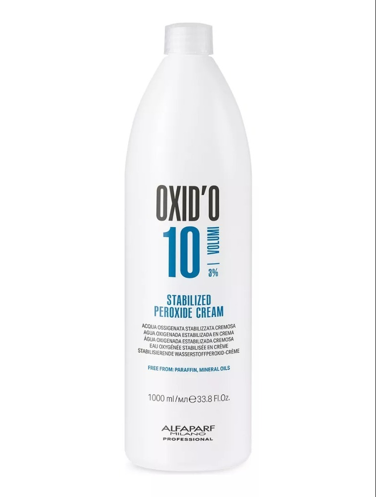 Água oxigenada de 10 volumes. Alfaparf Oxid'o 3% para a coloração tom sobre tom, coloração permanente e descoloração.