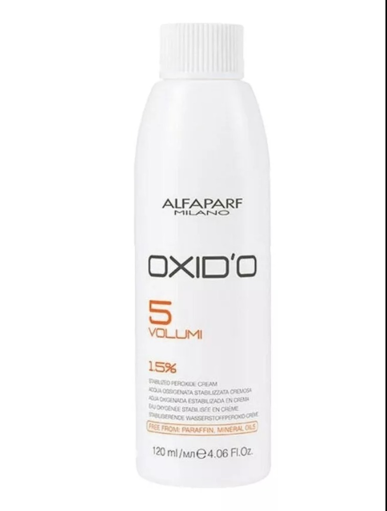 Água Oxigenada Alfaparf Oxid'o 5vol 120ml Água oxigenada 5 volumes. Alfaparf Oxid'o 12% proporciona de três a quatro tons de clareamento, com uniformidade e brilho ao resultado da cor.fórmula estabilizada, cremosa e perfumada, desenvolvida para otimizar as performances da coloração e do pó descolorante. Além disso, possui ingredientes especiais que protegem a estrutura do cabelo durante o processo de coloração, enquanto que os estabilizadores garantem a melhor oxidação.