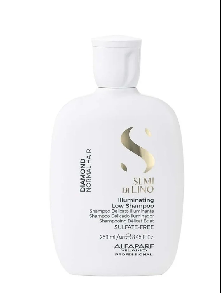 Alfaparf Semi Di Lino Diamond Illuminating – Shampoo sem Sulfato: Shampoo sem sulfato para todos os tipos de cabelo. Alfaparf Semi Di Lino Diamond Illuminating Shampoo proporciona muito mais brilho e maleabilidade intensa. Ideal para cabelos que estão um pouco sem vida e opacos. Shampoo Alfaparf Semi Di Lino Diamond não resseca os fios nas lavagens, pelo contrário. Proporciona uma limpeza delicada que hidrata o cabelo e adiciona maciez, além de realçar a luminosidade para que fiquem com o aspecto lindo e saudável. Ação: Complexo Multivitamínico: com poder antioxidante, revitaliza completamente a fibra dos fios para que fique muito mais bonita e saudável. Urban Defense Pro: ativo biotecnológico, que protege o cabelo contra a agressão de poluentes encontrados no ar e cuida do cabelo dia a dia. Shine Fix Complex: composto por extrato de linhaça que realça muito mais o brilho da fibra, desde a raiz até as pontas, por 24 horas. Color Fix Complex: une filtros UV e ativos antioxidantes que protegem a coloração contra o desgaste diário e mantêm o tom vibrante e bonito por muito mais tempo. Mesmo depois de 9 lavagens, a reflexão é intensa e brilhante (até 91%). Conselho de Aplicação: Aplique uma pequena quantidade no cabelo molhado e massageie o couro cabeludo. Quando surgir espuma, enxágue completamente e repita se achar necessário. Resultado: Fios delicadamente limpos, leves, hidratados e com muito mais brilho.