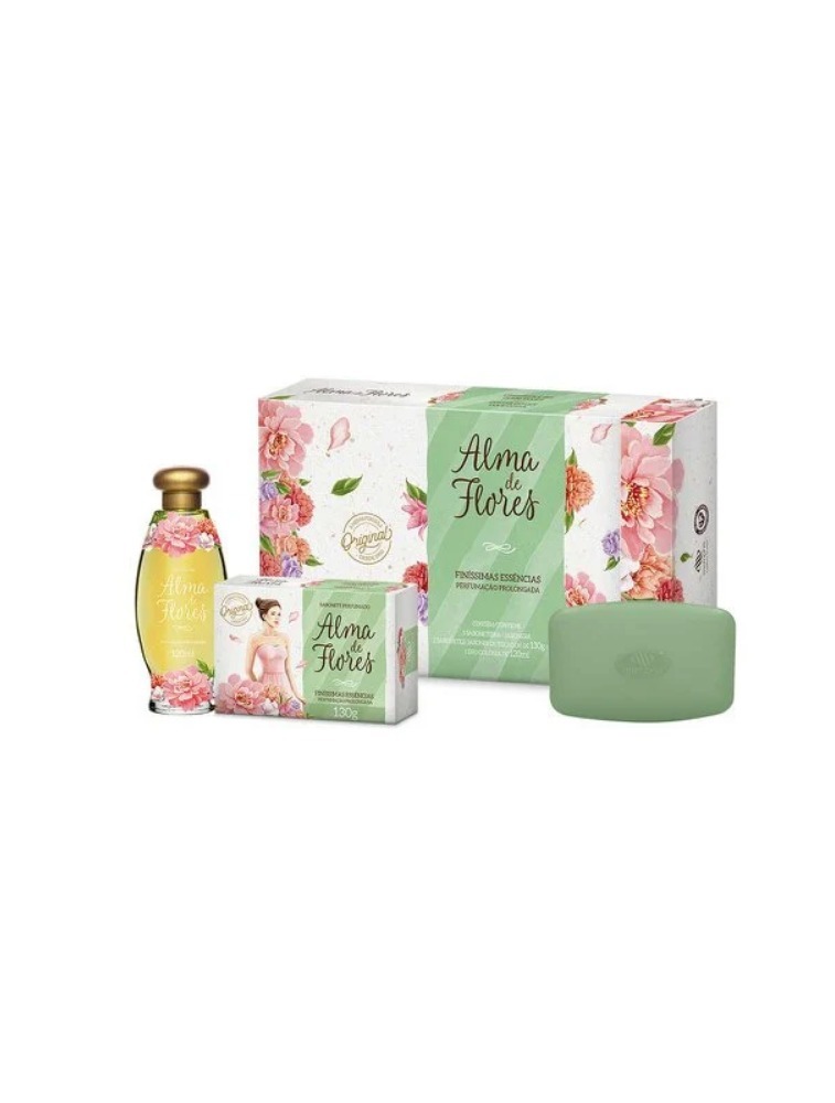 O Estojo Presente Alma de Flores Clássico foi desenvolvido para você presentear pessoas queridas. Ele vem com um Sabonete Alma de Flores Clássico 130g, uma Deo Colônia Alma de Flores Clássico 120ml e uma saboneteira.