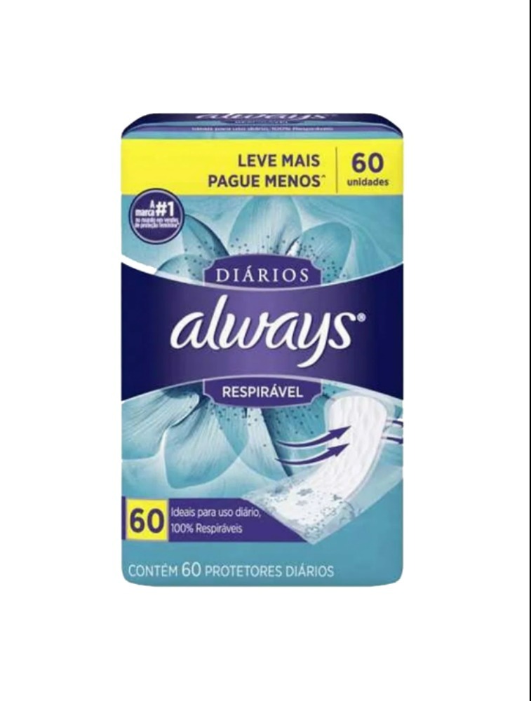 Para que serve: Protetor Diário Always Respirável ajuda a proteger a pele íntima da irritação, é respirável, permitindo a passagem de ar. Possui adesivo para que eles fiquem no lugar e canais para melhor absorção.