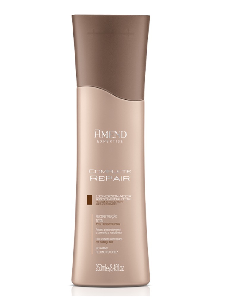 Condicionador para cabelos danificados. Amend Complete Repair Condicionador Reconstrutor auxilia no aumento da resistência enquanto hidrata, desembaraça e controla o frizz.
