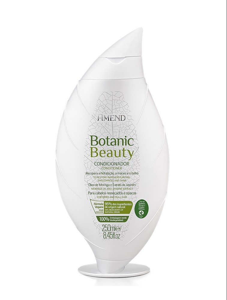 Condicionador para cabelos ressecados e opacos. Amend Botanic Beauty Óleo de Moringa & Extrato de Jasmim oferece hidratação, nutrição e brilho intenso aos fios.