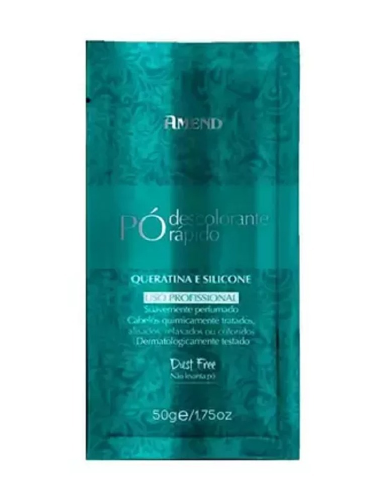 O Pó Descolorante Rápido Amend Queratina e Silicone12 possui de sua fórmula exclusiva promove proteção aos fios, minimizando as agressões causadas pela descoloração. É ideal para ser usado em cabelos que foram submetidos a processos químicos, alisados, relaxados ou coloridos. Apresenta excelente resultado em técnicas de descoloração tais como: clareamento total, mechas, reflexos, ballayages e luzes nos cabelos de forma prática e rápida. Fórmula Dust Free: Manuseio com agradável perfume, sem levantar pó.