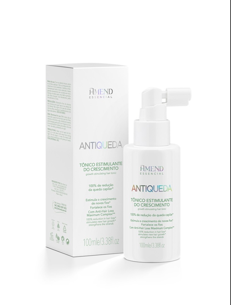 A linha Amend Essencial Antiqueda foi desenvolvida para combater a queda capilar e fortalecer os fios. Em testes de eficácia percebida, 100% dos participantes sentiram redução na queda capilar e fios mais encorpados e 87% sentiram o crescimento de novos fios ao usar a linha completa. Por meio da potente combinação de ativos Anti-Hair Loss Maximum Complex**, o Tônico Estimulante do Crescimento nutre e fortalece a raiz do cabelo. Age diretamente no cuidado do couro cabeludo, reduzindo a queda e criando um ambiente equilibrado e saudável para que os fios possam crescer fortes e revitalizados, auxiliando no prolongamento de fase anágena (crescimento dos fios) e ancoragem folicular. Estudo clínico comprova a eficácia percebida do Tônico Estimulante do Crescimento associado aos demais produtos da linha Amend Essencial Antiqueda*. Dos participantes: • 100% sentiram redução da queda de cabelo; • 100% sentiram os fios mais densos e encorpados; • 93% sentiram o couro cabeludo revitalizado; • 93% sentiram redução na sensação de coceira; • 87% sentiram o crescimento de novos fios no couro cabeludo; • 87% sentiram que os fios ficaram mais fortes e resistentes. *Teste de eficácia percebida realizado com participantes com idades entre 19 e 53 anos que apresentam diagnóstico de alopecia androgenética ou eflúvio telógeno.