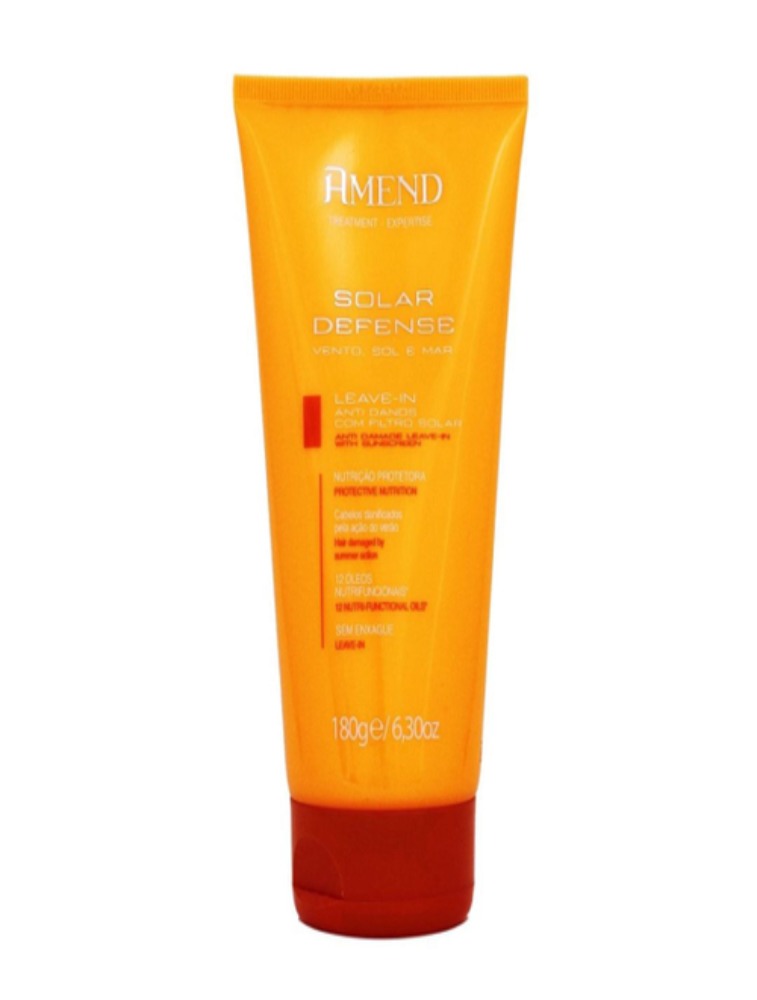 Leave-in antidanos com filtro solar para cabelos expostos ao sol, vento e mar. Amend Solar Defense com Filtro Solar Leave-in Anti Danos disciplina, modela e protege, pois forma um escudo protetor que ainda protege do desbotamento.