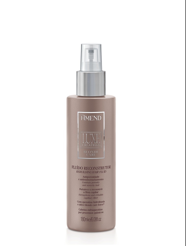 Fluído Amend Luxe Creations Blonde Care foi elaborado para devolver a maciez e o aspecto saudável aos cabelos que sofreram processos químicos e ficaram enfraquecidos, porosos e emborrachados. Com queratina e blonde care force, age de forma rápida aumentando o diâmetro dos fios, promovendo a reconstrução diretamente no córtex, criando pontes adicionais à estrutura de queratina, refazendo as ligações essenciais para recuperar a força e a vitalidade dos cabelos.