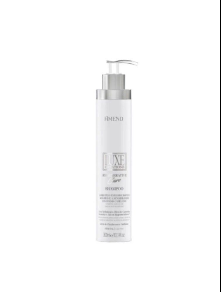 Shampoo Amend Luxe Creations Regenerative Care possui fórmula que cuida dos cabelos desgastados ao longo dos anos, limpando suavemente e reduzindo a sensibilidade do couro cabeludo. Os Ômegas 3 e 6 presentes no óleo de camelina dourada ajudam a fortalecer os fios e protegê-los do ressecamento. A alta concentração de ativos regeneradores restaura a umidade dos cabelos, protege a cor, diminui a quebra e repõe a massa capilar perdida ao longo dos anos, aumentando o diâmetro dos fios em até 2%. Prolonga a hidratação dos fios, eliminando o aspecto áspero, deixando-os brilhantes e macios.