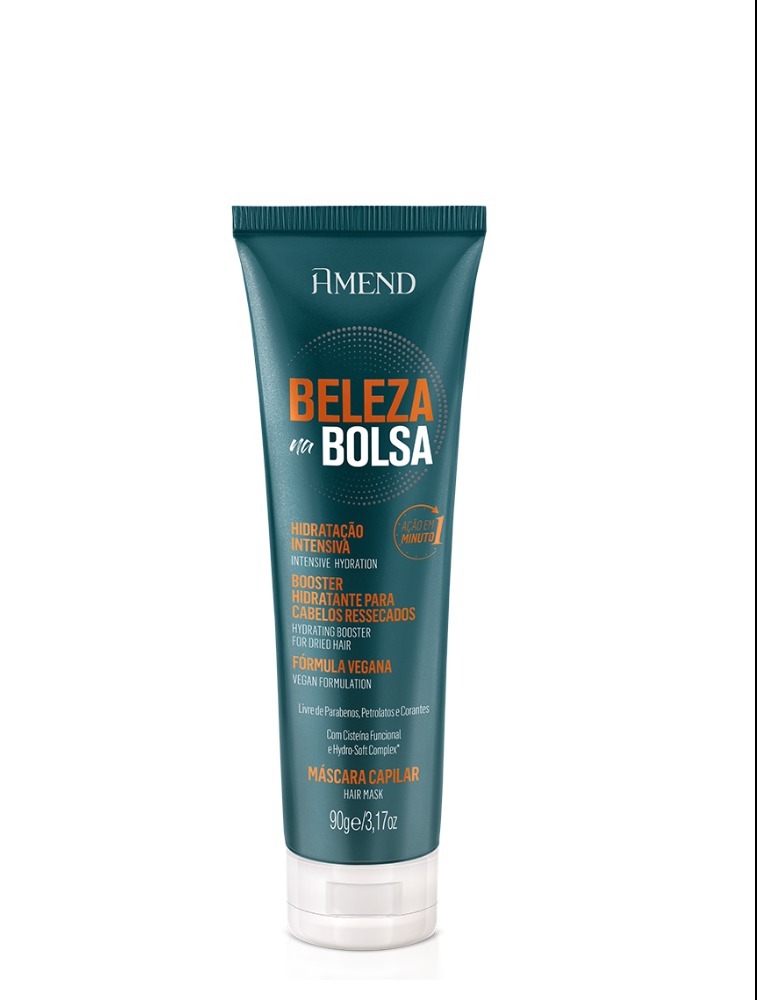 Máscara de Hidratação Intensiva Amend Beleza na Bolsa possui alta concentração de ativos hidratantes e reparadores da fórmula ajuda na retenção da água dando nova vida aos cabelos, deixando-os extremamente macios e flexíveis. As características originais dos fios perdidas nos processos mecânicos e químicos são resgatadas, protegendo o brilho e a hidratação. Favorece o alinhamento das cutículas, deixando os fios imediatamente hidratados, maleáveis e brilhantes. Embalagem em tamanho ideal para uso em viagens. Dermatologicamente testado.