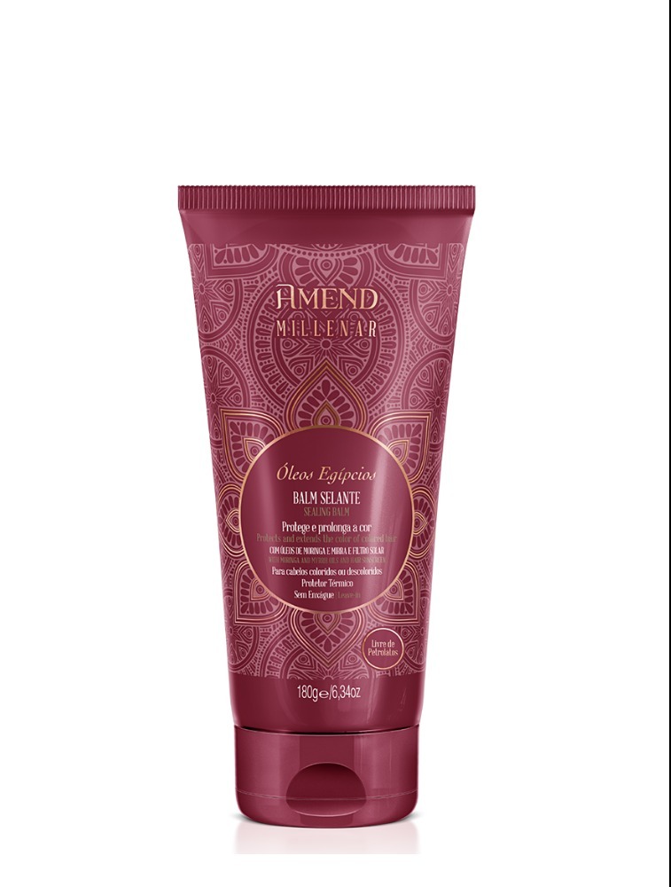 Balm Selante Amend Millenar Óleos Egípcios inspirados pelo povo egípcio, que há mais de 4.000 anos já cuidava da beleza, desenvolvemos um Balm Selante que age suavemente, protegendo do calor do secador e das agressões dos raios UVs. A combinação das propriedades protetoras, regenerativas e antioxidantes dos Óleos de Moringa e de Mirra ao serem associadas ao Extreme Color System, com Óleo de Semente de Girassol, blinda os fios, ajudando a fixar a cor e mantê-la vibrante por muito mais tempo, garantindo um cabelo sedoso, macio, brilhante e protegido do desbotamento.