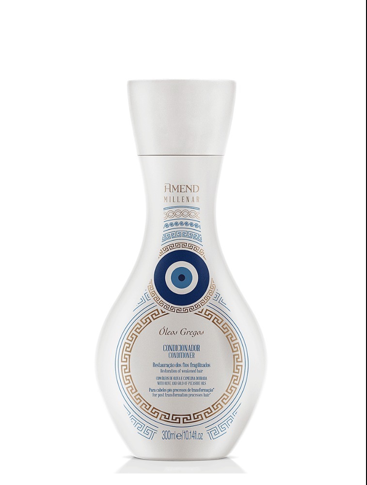 Inspirados no conhecimento milenar do povo grego que buscava inspiração na beleza divina, desenvolvemos um condicionador com alto poder emoliente. Sua fórmula combina os óleos de oliva e de camelina dourada ao Pro-Biofilm Complex** que combatem e previnem danos causados por processos de transformação, tais como *descoloração, relaxamento ou alisamento, proporcionando brilho e hidratação profunda aos fios e atuando na reparação dos danos da fibra capilar. Livre de Petrolato, Parabenos e Corantes. Dermatologicamente testado.