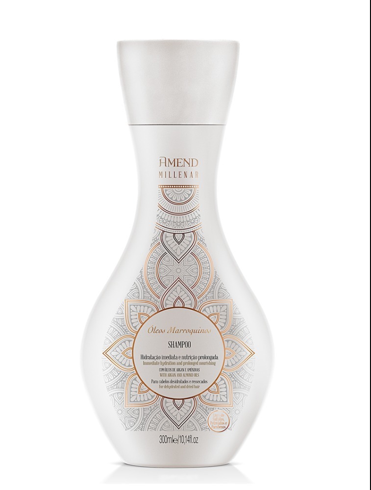 Shampoo Amend Millenar Óleos Marroquinos inspirados nos ingredientes usados há milênios no Marrocos para os cuidados da beleza, desenvolvemos um shampoo que limpa sem agredir os cabelos enquanto proporciona efeito suavizante, nutrição, maciez, elasticidade e hidratação aos fios, através da rica combinação dos óleos marroquinos e do potente ativo protetor e disciplinante extraído do Tamarindo.