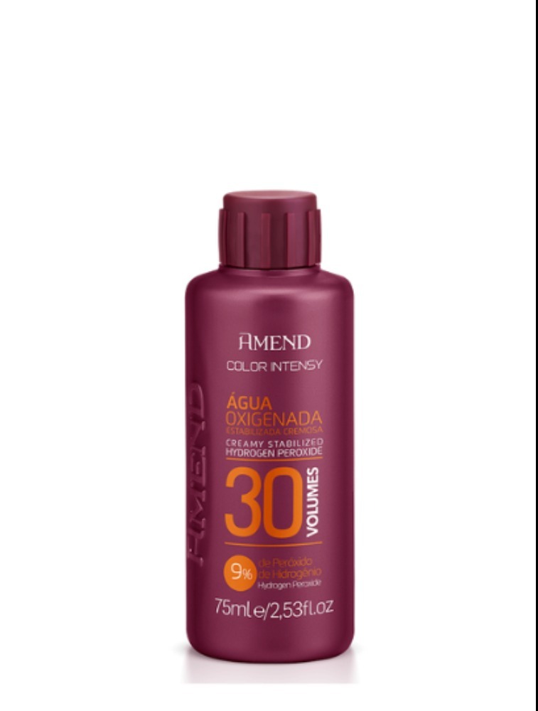 Água Oxigenada Cremosa Amend Color Intensy 30 volumes 75ml Especialmente desenvolvida para o uso com os produtos da linha Amend Color Intensy. Descolore e auxilia no tingimento dos cabelos. PARA USO PROFISSIONAL.