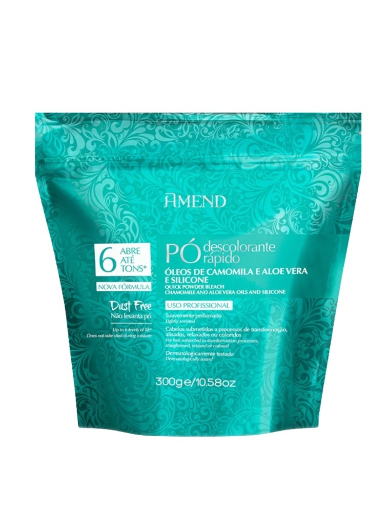 O Pó Descolorante Rápido Amend Óleos de Camomila, Aloe Vera e Silicone 300g foi desenvolvido para proporcionar um clareamento eficaz e uniforme, minimizando danos à fibra capilar. Sua fórmula exclusiva combina Óleos de Camomila e Aloe Vera, que auxiliam na hidratação dos fios, enquanto o Silicone forma um filme protetor, reduzindo o ressecamento e a quebra durante o processo de descoloração.
