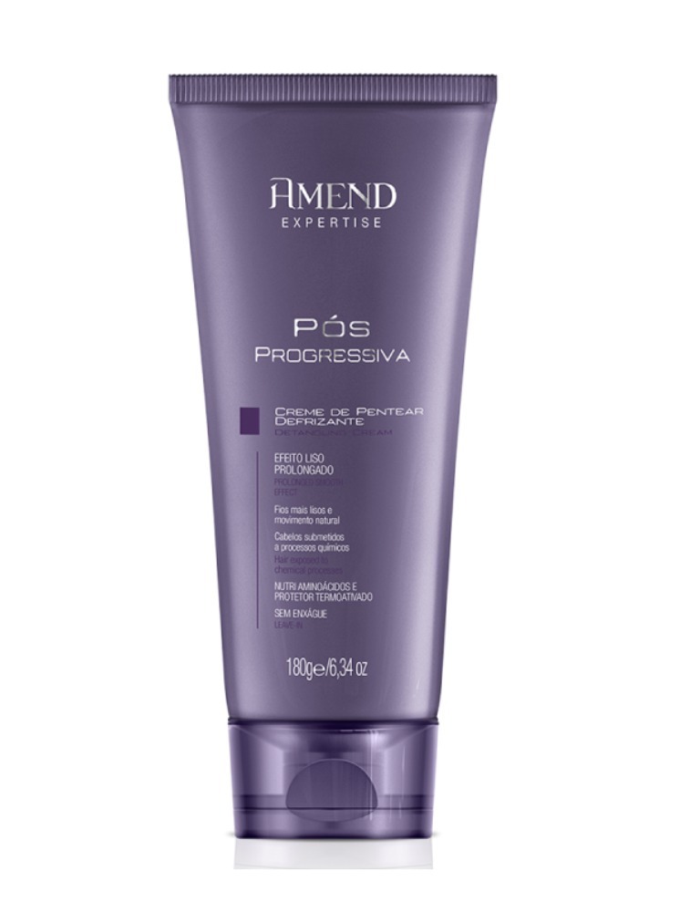 Creme de Pentear Defrisante Amend Expertise Pós Progressiva Ex com proteção termoativada que minimiza os danos provocados pelo calor do secador ou chapinha facilitando e acelerando a secagem com escova. Condiciona os fios, desembaraçando-os e tornando-os fáceis de pentear. Contém ativos que aumentam a resistência do fio à umidade reduzindo o frizz, permitindo um efeito liso mais eficiente e prolongado.