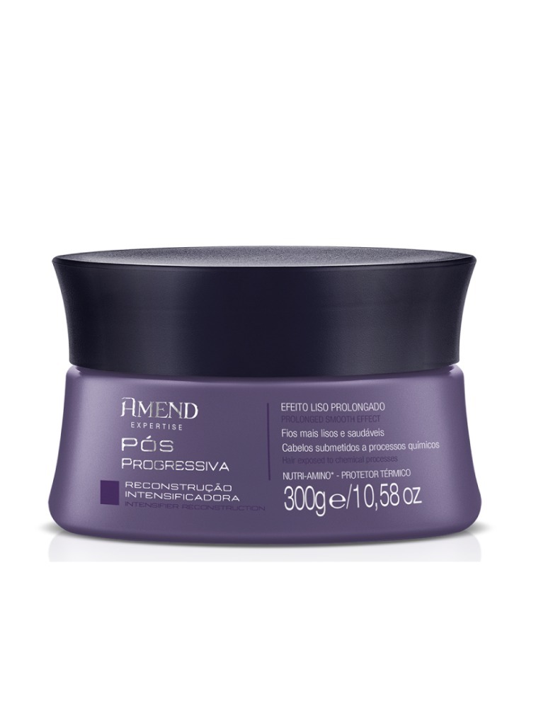 Máscara de reconstrução para cabelos com processos químicos. Amend Pós Progressiva Máscara repara danos profundos e prolonga o liso. Ideal para fios que passaram por alisamentos.