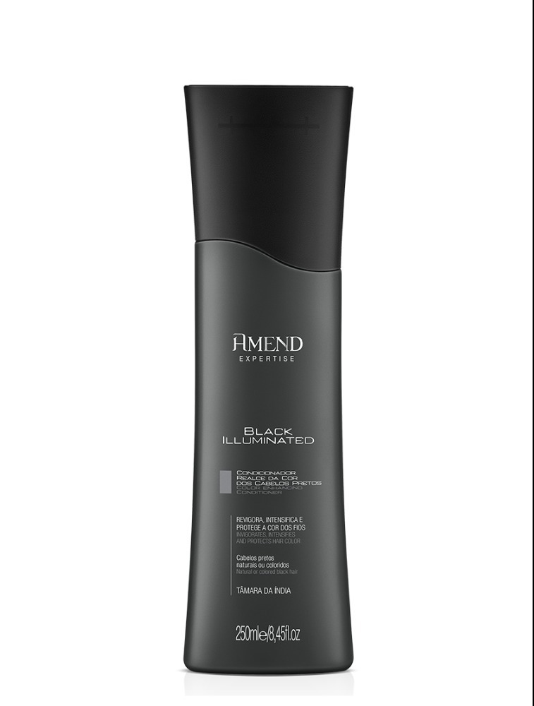 Condicionador Amend Expertise Realce da Cor Black Illuminated condiciona, revigora e intensifica a cor dos fios pretos naturais ou coloridos. Com fórmula levemente pigmentada enriquecida com tâmara da índia, que auxilia no combate a oxidação dos fios, promove hidratação profunda e possui ação antifrizz. Brilho intenso com a cor protegida por mais tempo.