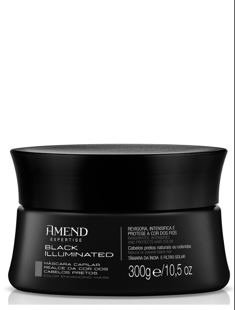 Máscara Amend Expertise Realce da Cor Black Illuminated possui pigmentos que tonalizam e intensificam a cor dos fios com tons pretos naturais ou coloridos. Proporciona hidratação profunda, brilho e possui ação antioxidante, que evita o desbotamento e ajuda a reter a cor nos fios por mais tempo.