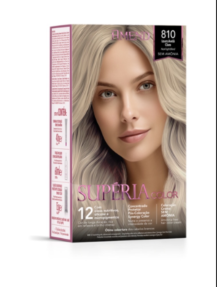 Amend Supéria Color 810 Louro Avelã Claro - Sua fórmula creme sem Amônia colore os cabelos com cores modernas, ricas em reflexos naturais e brilho intenso, sem agredir a integridade da estrutura capilar durante o processo de coloração. Contém Micropigmentos que penetram no interior do fio e Silicones que blindam a camada externa, proporcionando cor e brilho de longa duração. Promove ótima cobertura dos cabelos brancos e não resseca os fios. Pode ser aplicada em cabelos naturais, com mechas, coloridos, descoloridos, inclusive os alisados, relaxados ou com escovas progressivas. Através do Concentrado Protetor Pós Coloração Synergy Color, mantenha os cabelos com cores cheias de vida, sedosos e brilhantes, Rico em Fosfolipídios de Girassol, o Concentrado Protetor revigora, nutre profundamente e preserva a intensidade da cor retendo os pigmentos por mais tempo no interior da fibra capilar. Gostou? Veja também toda a nossa linha de Tonalizantes!