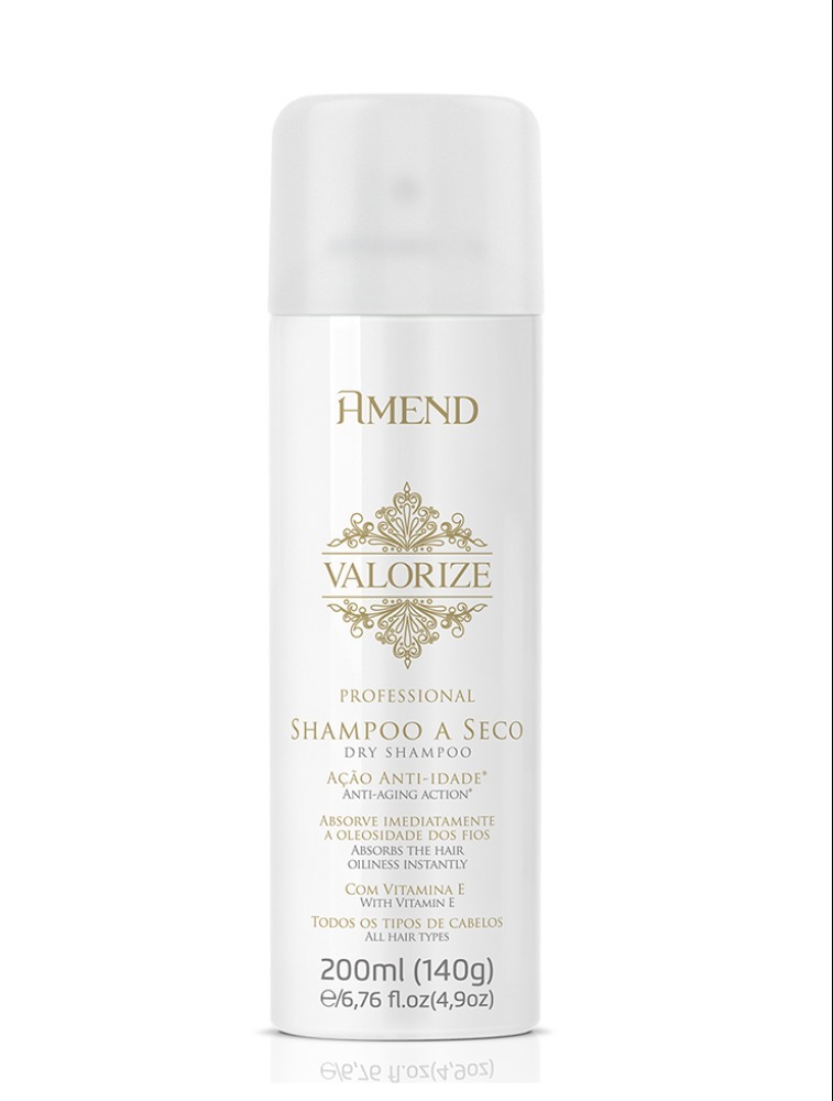 Shampoo a seco. Amend Valorize Shampoo a Seco Ação Anti-Idade absorve a oleosidade para que o cabelo fique com aspecto limpo por mais tempo.