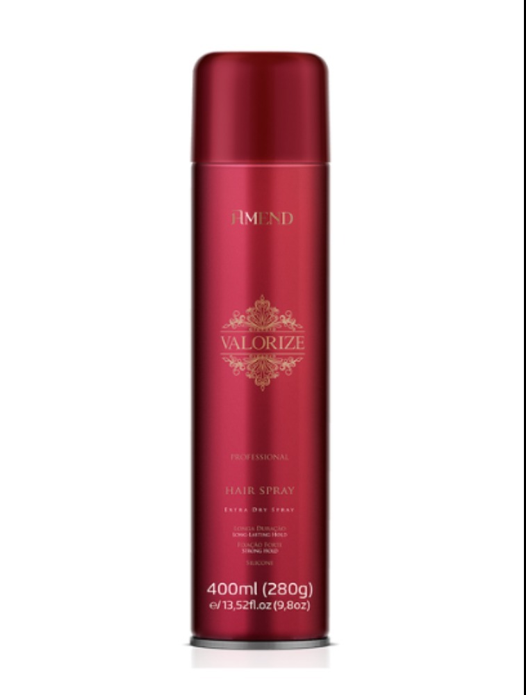 O Hair Spray Amend Valorize Forte é um spray de fixação forte de longa duração, ideal para finalizar qualquer tipo de penteado. Forma um filme flexível e brilhante, com alta resistência à umidade e proteção aos cabelos. Fácil retirada. Não deixa resíduos no fio.