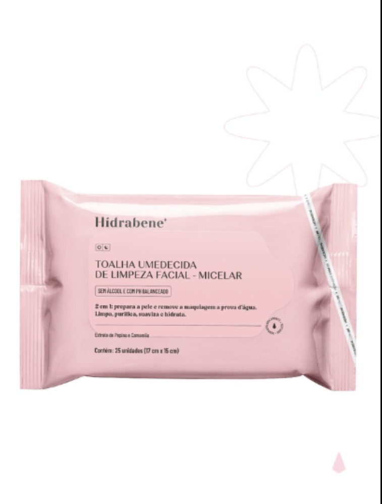 Toalha Umedecida descartável com ação 2 em 1 que prepara a pele e remove maquiagens à prova d’água.