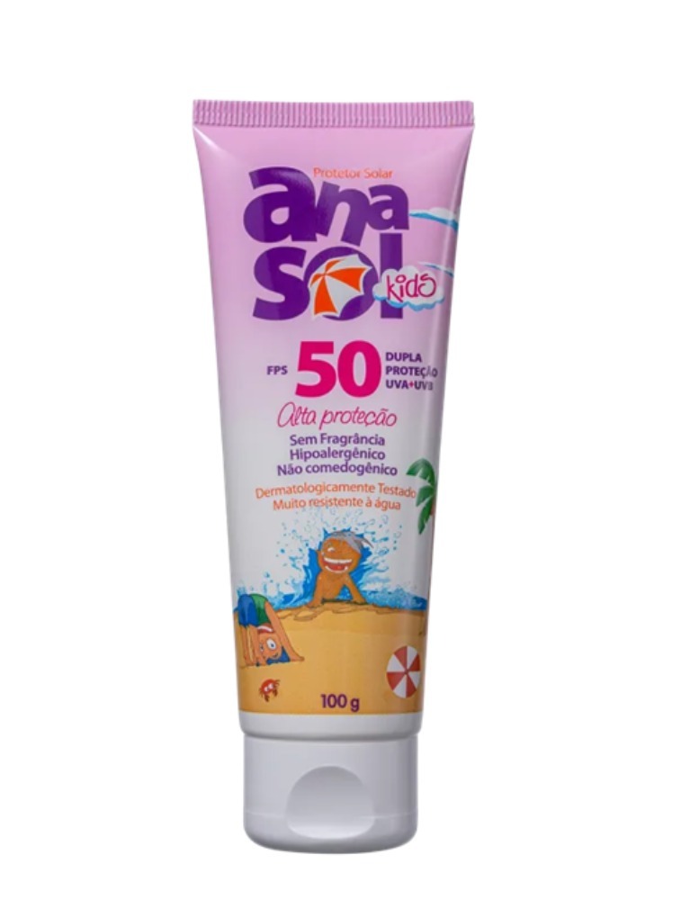 O Protetor Solar Anasol Kids FPS 50 foi especialmente desenvolvido para incrementar a rotina de cuidados das crianças e bebês acima de 6 meses de idade. Indicado até mesmo para peles extremamente sensíveis, o produto - formulado para minimizar as chances de alergia - combate a ação danosa dos raios UVA e UVB e ainda ajuda a prevenir o envelhecimento precoce. Também hidrata intensamente, apresenta excelente resistência à água, não obstrui os poros e mantém a pele sempre saudável e pronta para brincar.