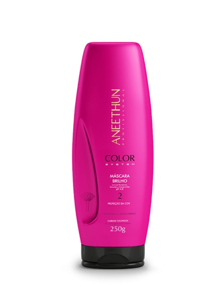 A Máscara Brilho Color System foi elaborada com ingredientes de alta performance, livre de parabenos, corantes e conservantes. Oferece nutrição e hidratação profunda, protege a fibra capilar e prolonga o efeito da coloração, promovendo um brilho intenso instantaneamente. pH 4,0.