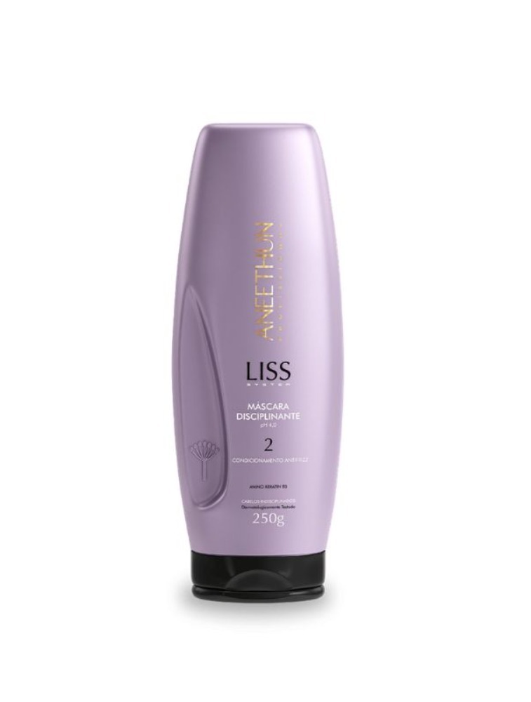 A máscara Liss System oferece tratamento disciplinante para um perfeito alinhamento dos fios e redução efetiva do frizz. Proporciona hidratação, movimento e brilho. pH 4,0.