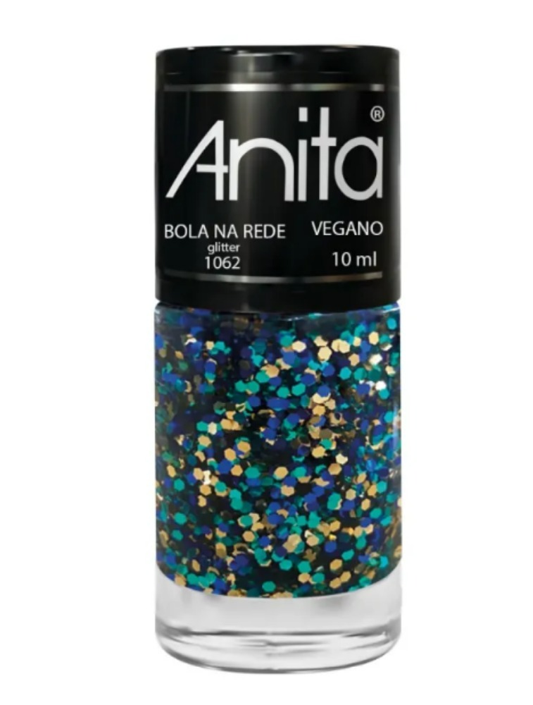 Esmalte glitter. Anita Bola na Rede foi inicialmente lançado na coleção em homenagem a Copa, fez tanto sucesso que virou uma cor permanente!