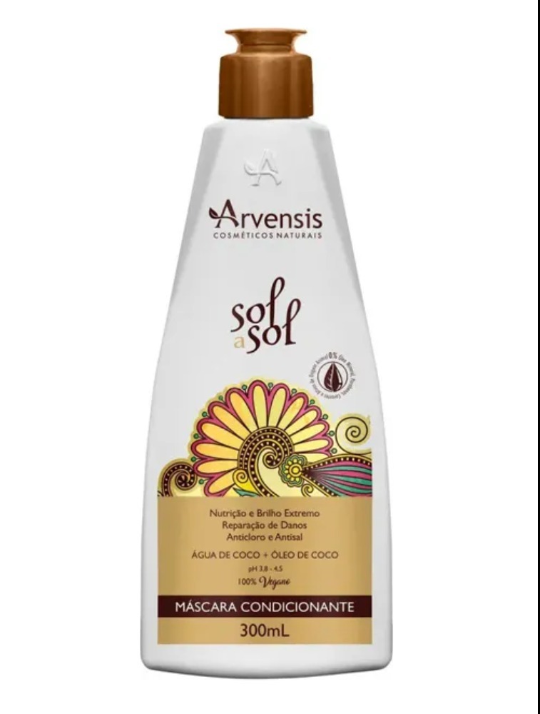 Máscara condicionante para todos os tipos de cabelo. Arvensis Sol a Sol protege o cabelo da ação dos raios solares, sal e cloro.