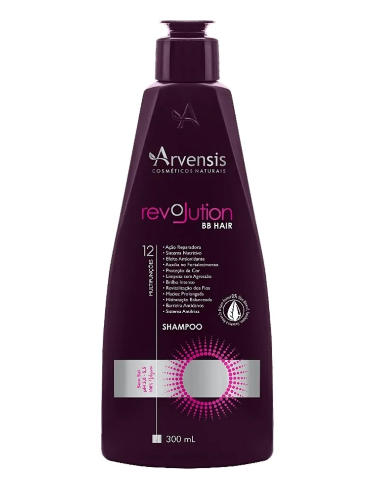 O Shampoo Arvensis Revolution BB Hair está disponível em embalagem prática e econômica de 300ml, perfeita para uso diário e para levar em viagens.