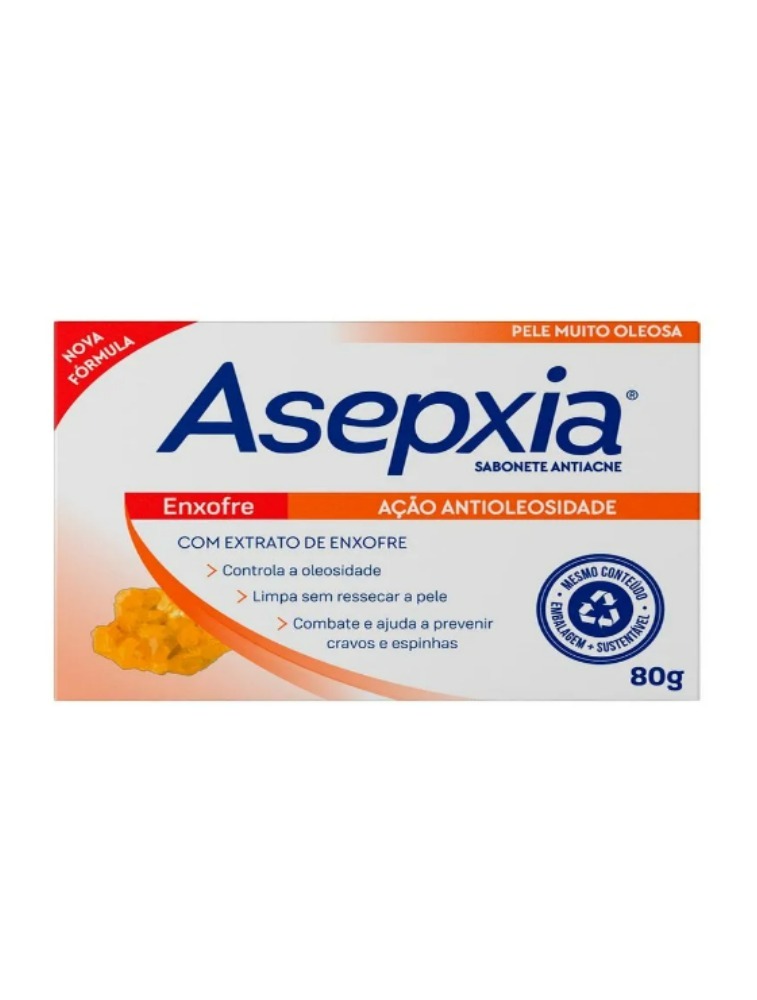 O novo Asepxia® sabonete antiacne enxofre limpa profundamente os poros e reduz o excesso de oleosidade da sua pele, combatendo cravos e espinhas com a força do enxofre, um ingrediente de origem natural com ação antimicrobiana. Sua pele fica mais saudável e bonita todos os dias.