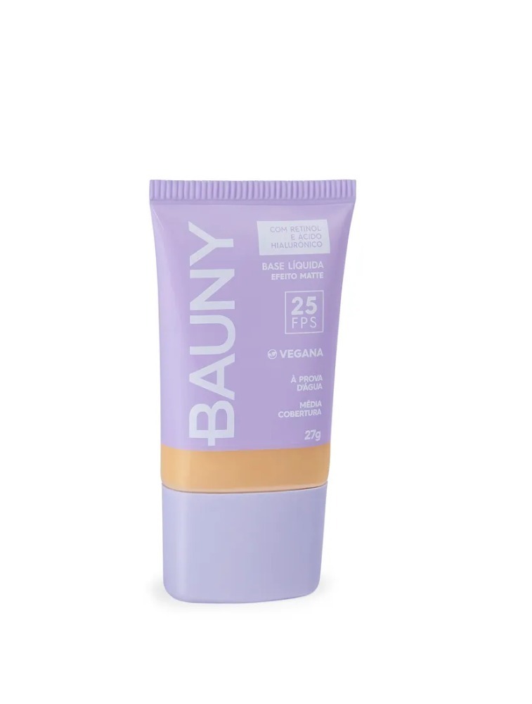 A base Bauny efeito matte 050 pertence à cartela de cores para peles médias e é a escolha perfeita para você que possui um subtom de pele do tipo quente dourada.
