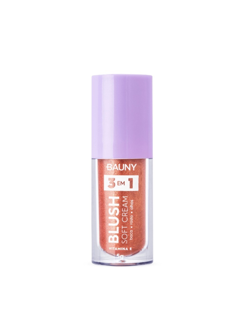 O blush líquido Soft Cream 3x1 da Bauny traz alta performance, com efeito natural e fácil aplicação.