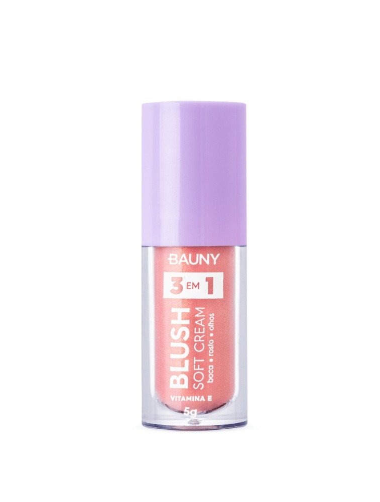 O blush líquido Soft Cream 3x1 da Bauny traz alta performance, com efeito natural e fácil aplicação.