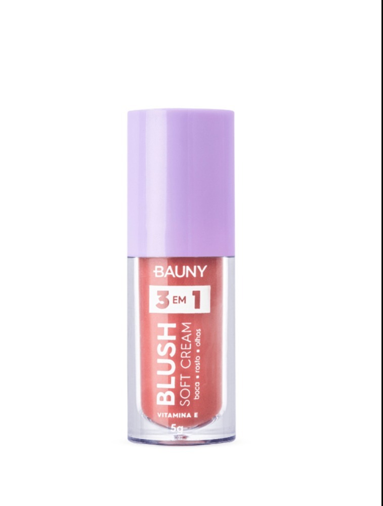 O blush líquido Soft Cream 3x1 da Bauny traz alta performance, com efeito natural e fácil aplicação.