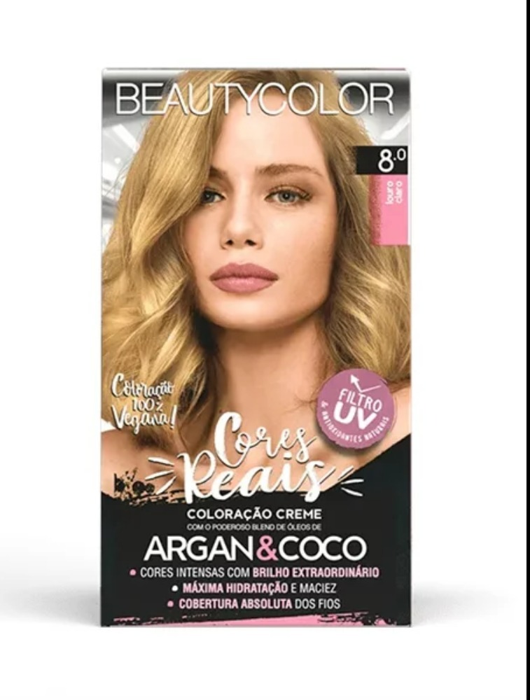 Coloração Permanente Kit Cores Reais -8.0 Louro Claro