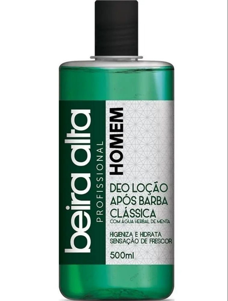 Deo Loção Após Barba Beira Alta Clássica 500ml A Deo Loção Após Barba da Beira Alta, contém em seus ativos a Água Herbal de Menta, que deixa a pele com uma sensação gostosa e refrescante. Ideal para uso adulto, o pós-barba da Beira Alta perfuma a pele, higieniza e hidrata, com todo o cuidado necessário. Invista nesse cuidado que é essêncial para uma pele saúdavel e cheia de vida.
