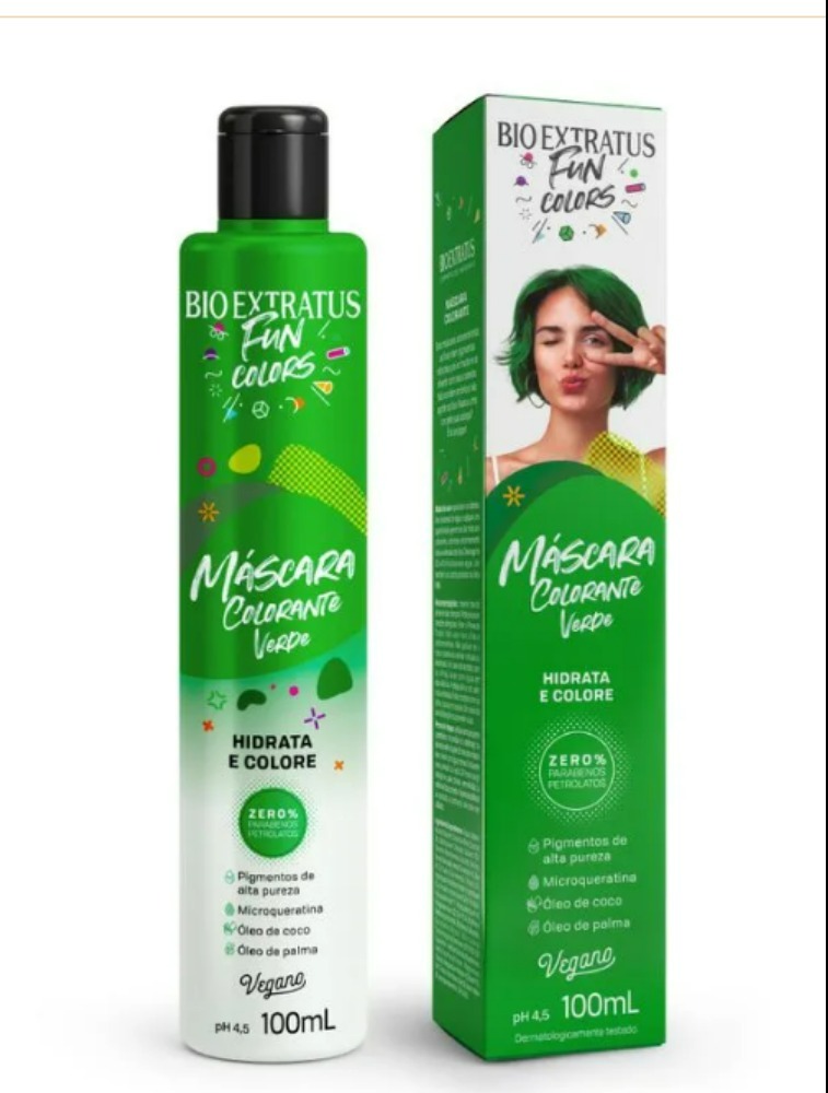 As máscaras colorantes FUN Colors têm cores vibrantes, feitas com pigmentos especiais e não têm amônia, pra você usar e mudar o quanto quiser. São veganas e hidratam enquanto colorem, porque têm microqueratina e óleos de coco e de palma na fórmula. Passou uma cor pela sua cabeça? É só se jogar! pH 4,5.