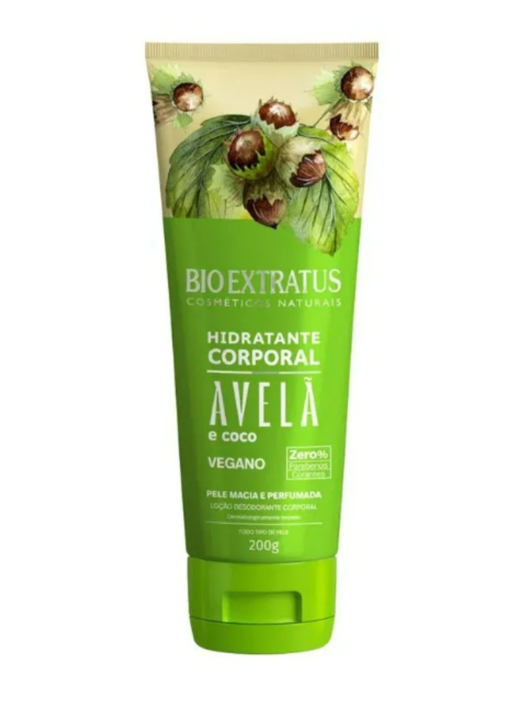 O Hidratante Corporal Avelã E Coco da Bio Extratus possui ativos e nutrientes que formam uma emulsão que nutre, amacia, protege proporcionando uma pele perfumada, com mais viço e brilho. Não testado em animais. Livre de Parabenos e Corantes. Vegano.